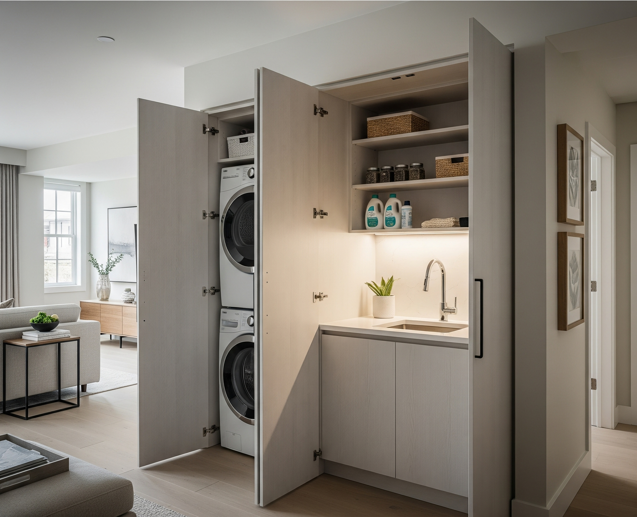 hidden/built-in laundry