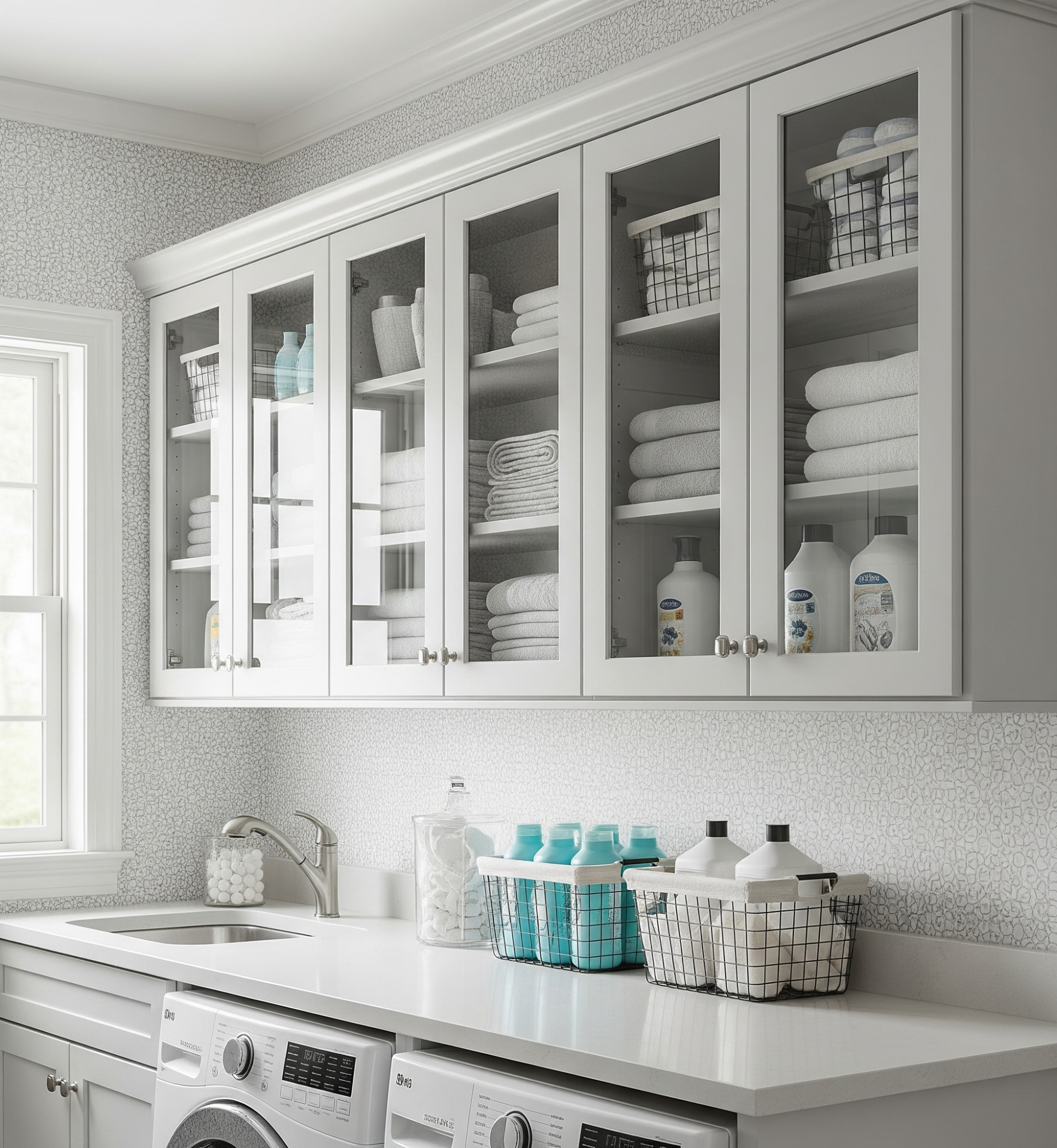 Lafayette Builders’ glass-front laundry cabinet doors are perfect for homeowners who take pride in both organisation and style. Designed to display neatly arranged detergents, towels, and laundry essentials, they create an open, airy feel that elevates the entire space. The transparency of the glass adds a touch of sophistication, making your laundry not just functional but visually appealing. Ideal for those who value accessibility and design, glass-front cabinets work beautifully in both contemporary and classic interiors. With Lafayette’s expert craftsmanship, these cabinets combine practicality and elegance, transforming your laundry into a well-organised and stylish feature of your home.