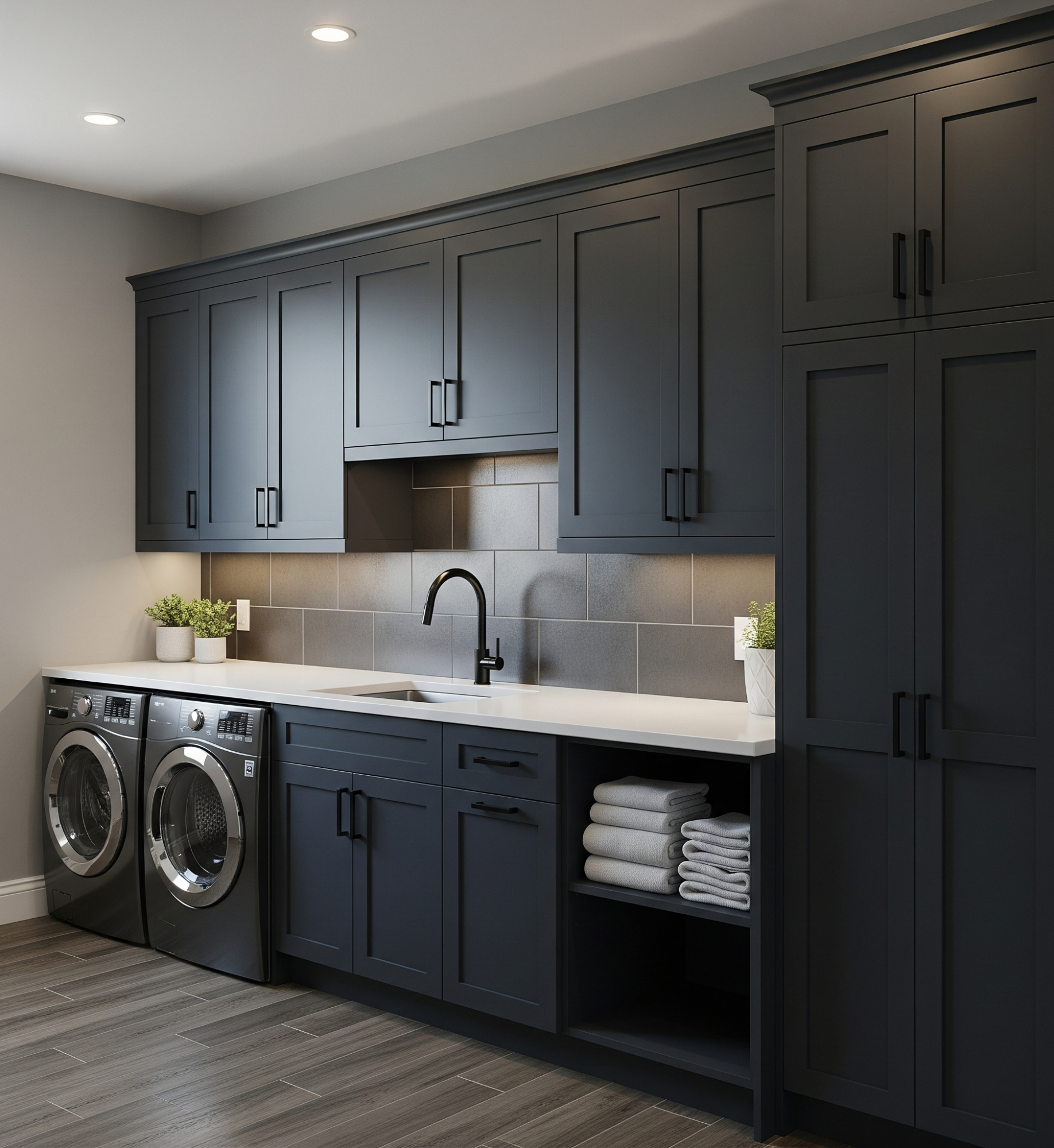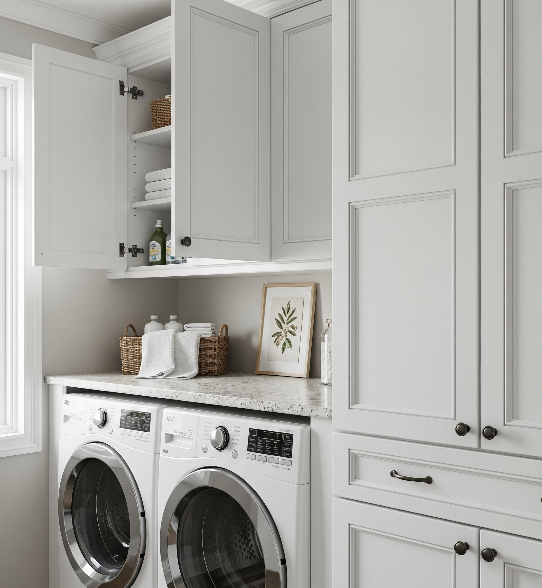 – Modular Design: Our flexible cabinet system lets you create layouts tailored to your laundry, whether it’s a compact nook or a large utility room.